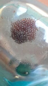 nas fotos é possível ver ovos de carrapatas proveniente de animais tratados.